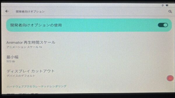 なので開発者向けオプションをインストールして