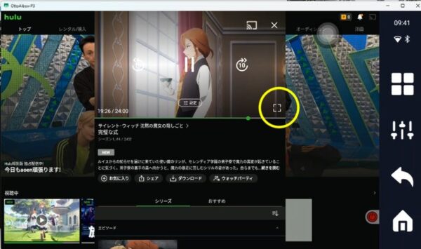そしてHuluですが、画面の下1/3が欠けます